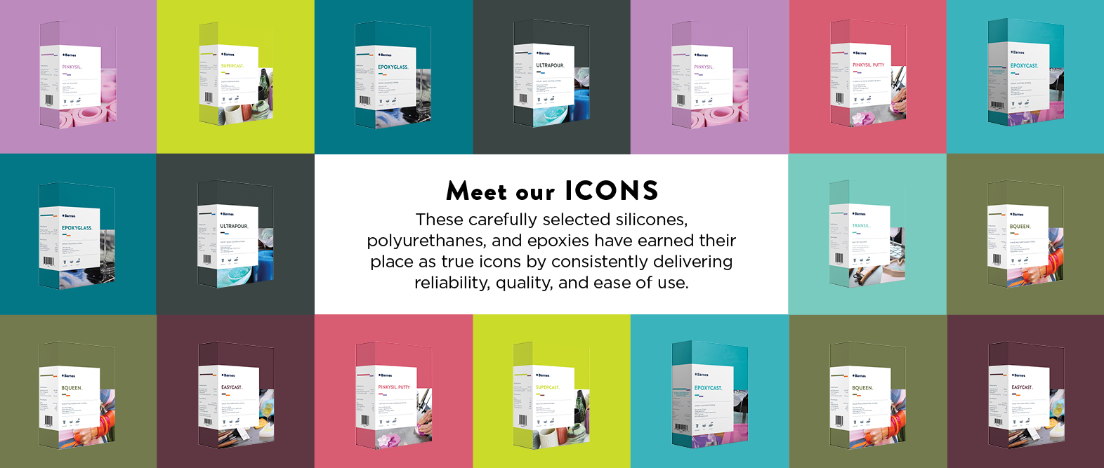 At Barnes, our ICON range is more than a collection of products — it’s the backbone of our brand and the heart of our customers’ creativity. These carefully selected silicones, polyurethanes, and epoxies have earned their place as true icons by consistently delivering reliability, quality, and ease of use. They represent decades of experience and a commitment to sourcing and testing only the very best materials so that every product that carries the ICON name can be trusted to perform.