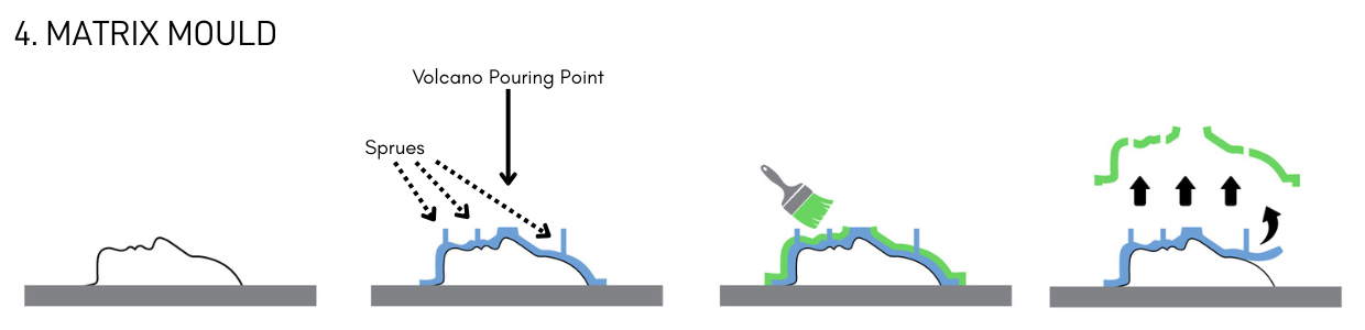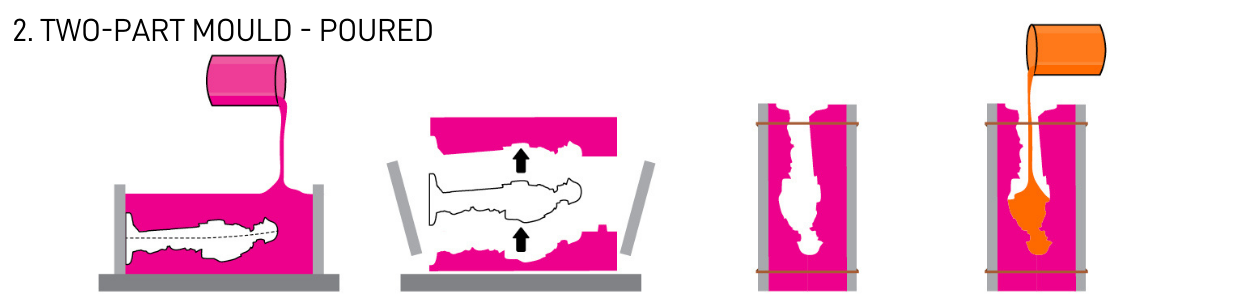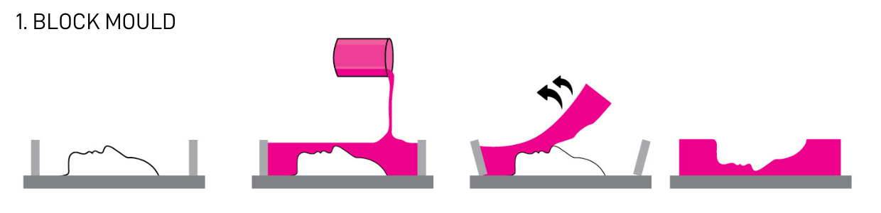 - The design of the mould such as single part block mould, two-part block mould, brush on silicone skin, or matrix mould
