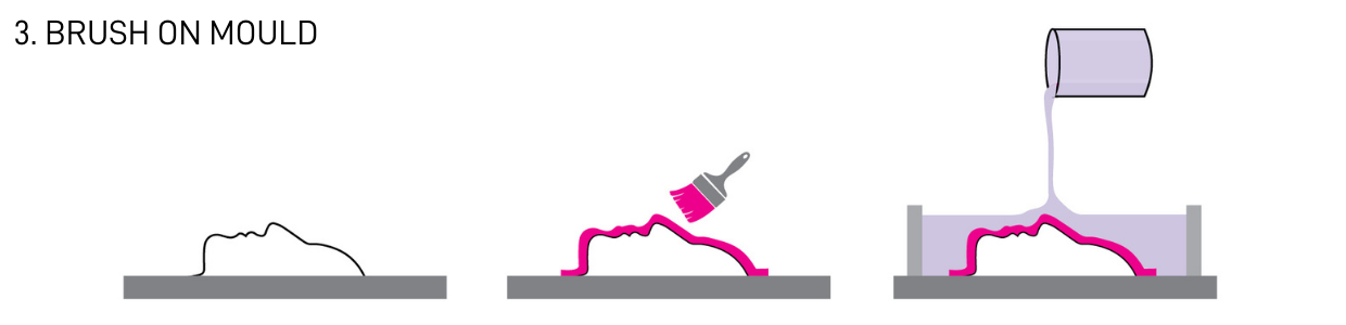 For added stability, create a flange around the object by brushing an additional 3cm or more onto the board. This extra room will allow for a more finished edge and an easier de-mould.