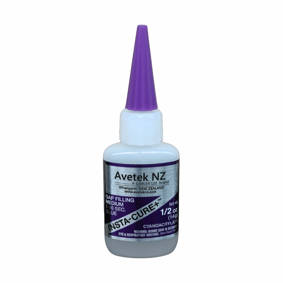 Insta-Cure+ is a higher viscosity CA for loose fitting joints in which the adhesive must bridge gaps. Normally, the thicker CA is applied to one surface and then the parts are held tightly together for about 5 to 15 seconds. For large surface areas, including those with close fitting joints such as laminations, Insta-Cure+ should also be used. To prevent premature curing, don’t spread the glue into a thin film. Lay down a serpentine bead with about 1″ separations on one surface, then assemble the parts, letting the pressure spread the CA out.