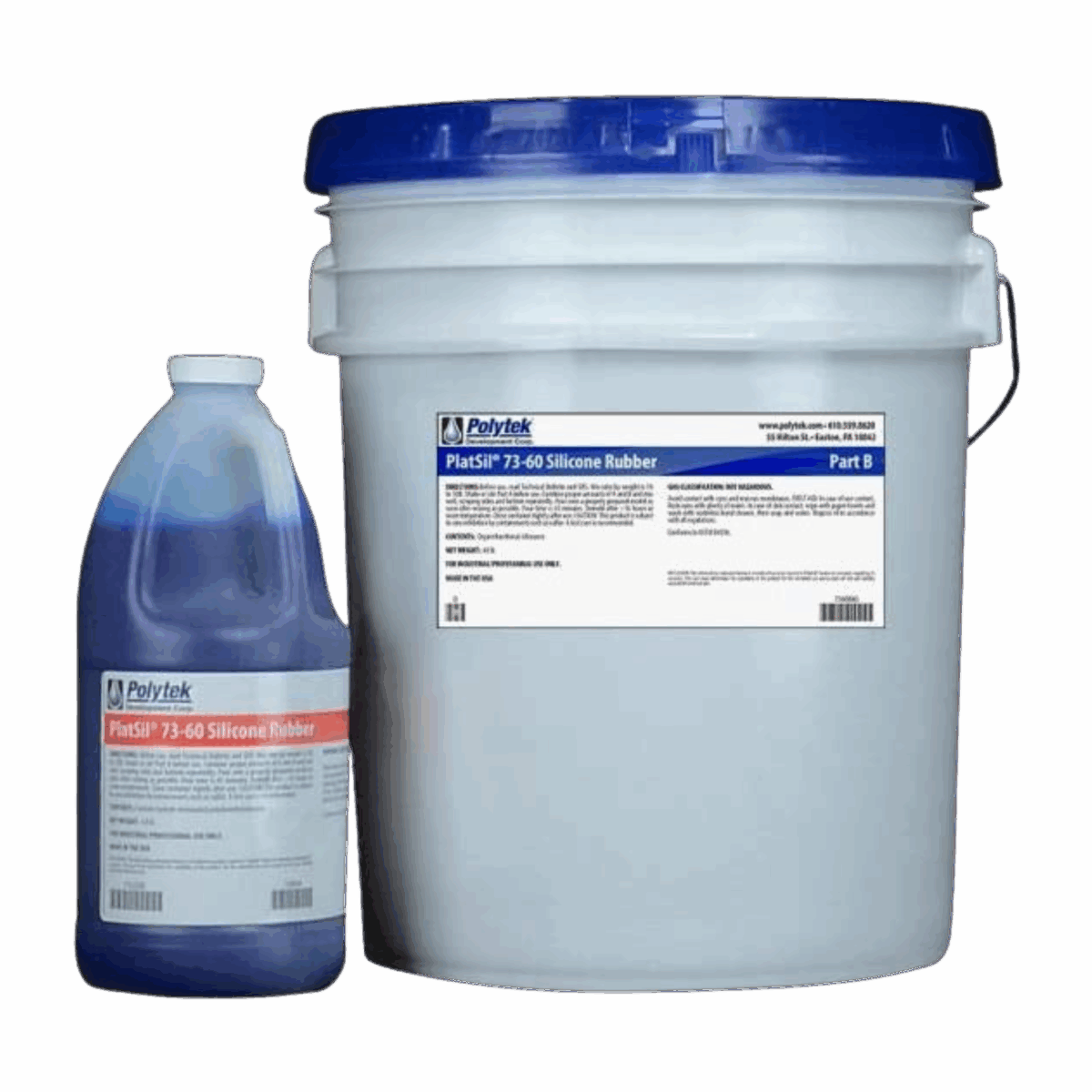 PlatSil® 73-60 Silicone Rubber is a two-part, platinum-catalyzed, liquid silicone system that cures (RTV) to a blue, Shore A60 rubber. This is a pourable rubber, but it can be easily thickened with Sil-Thix Liquid Thickener for brush-on application.